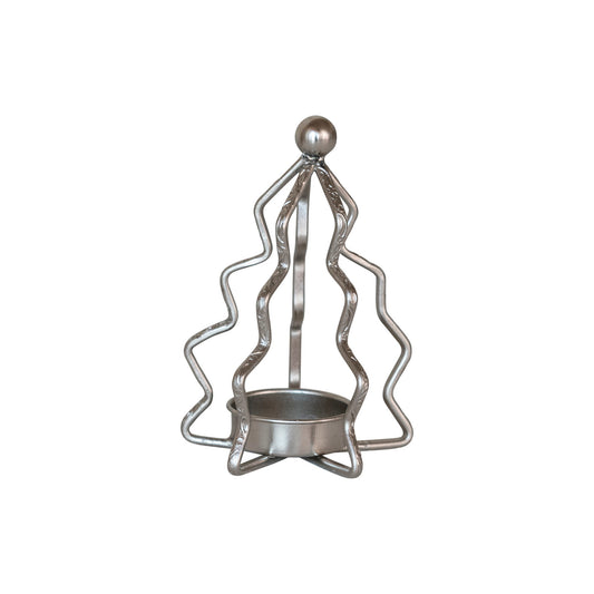 Metal Tree-Shaped Tealight Holder | Silver