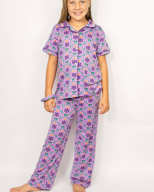 Girl's Mardi Gras Bow Pajama Set