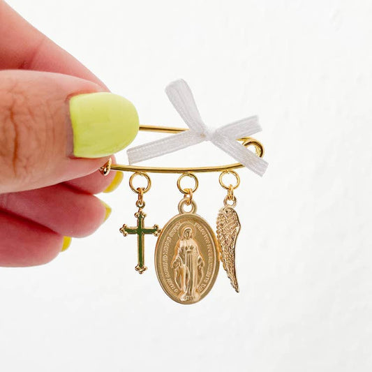 Mary Medal Lapel Pin w/ Bow | 3 Charms