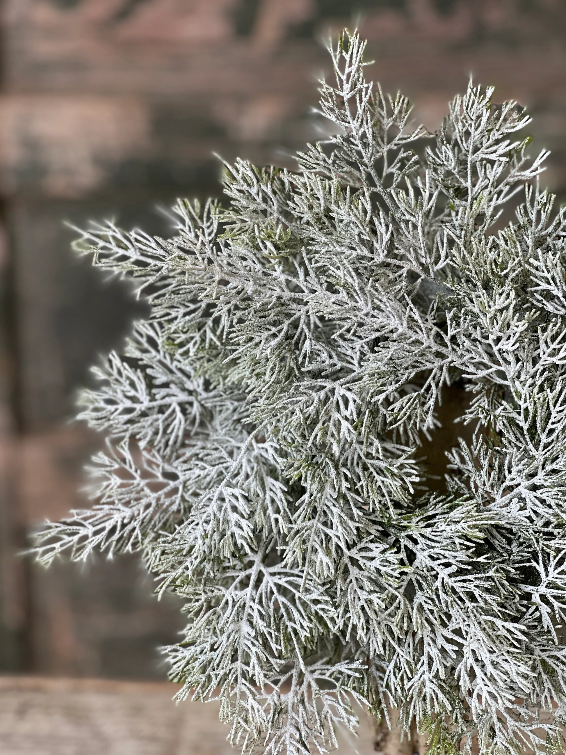 The Fairisle Cedar is a structured and snowy collection that has airy foliage dusted with ultra fine snow and glitter. A wonderful and versatile collection that works well all winter long!