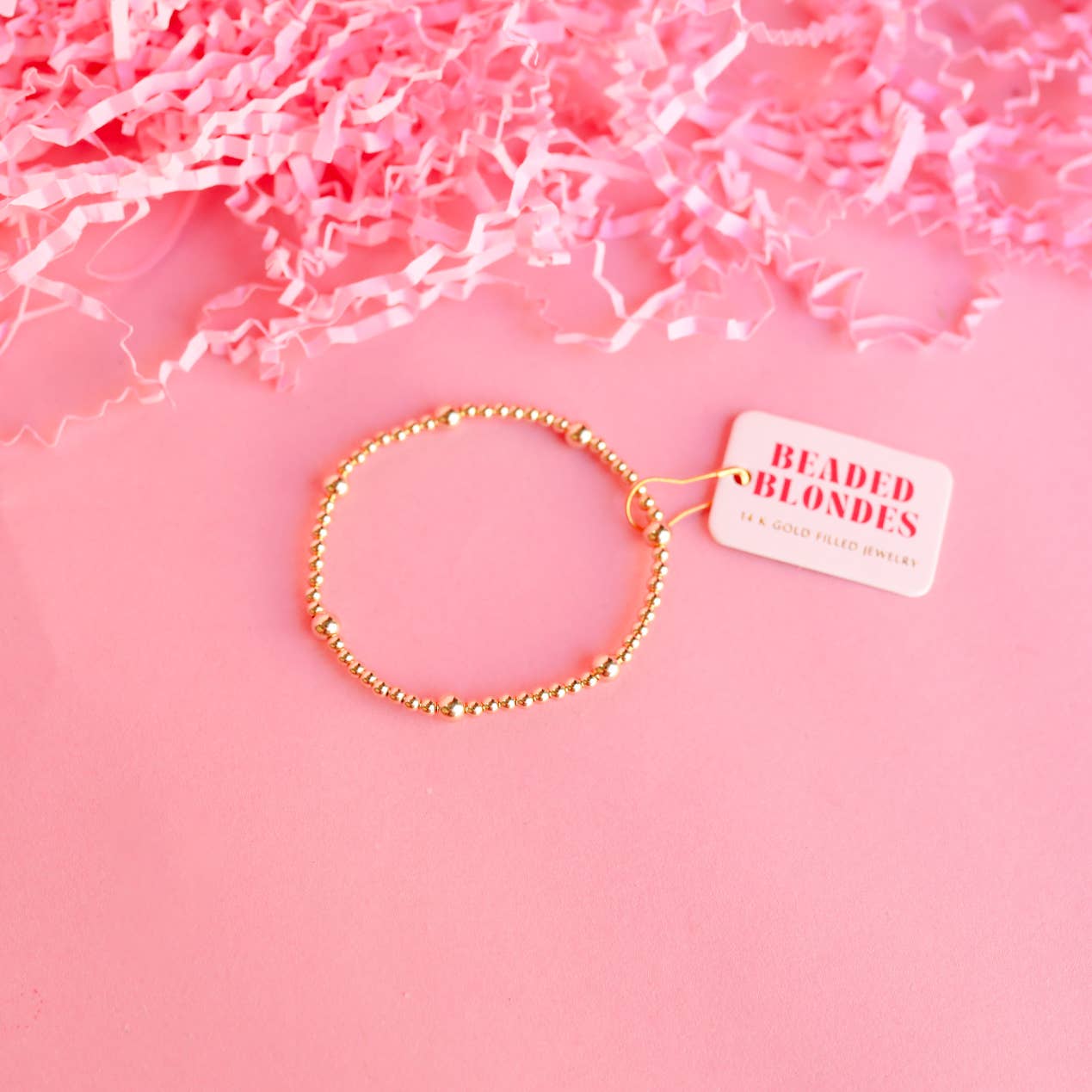 This is a mix between our 3mm and 5mm 14k gold-filled beads. So dainty and so sweet!  Made from 14 k gold filled beads so perfect for everyday wear! Sweat proof, water proof and tarnish free!