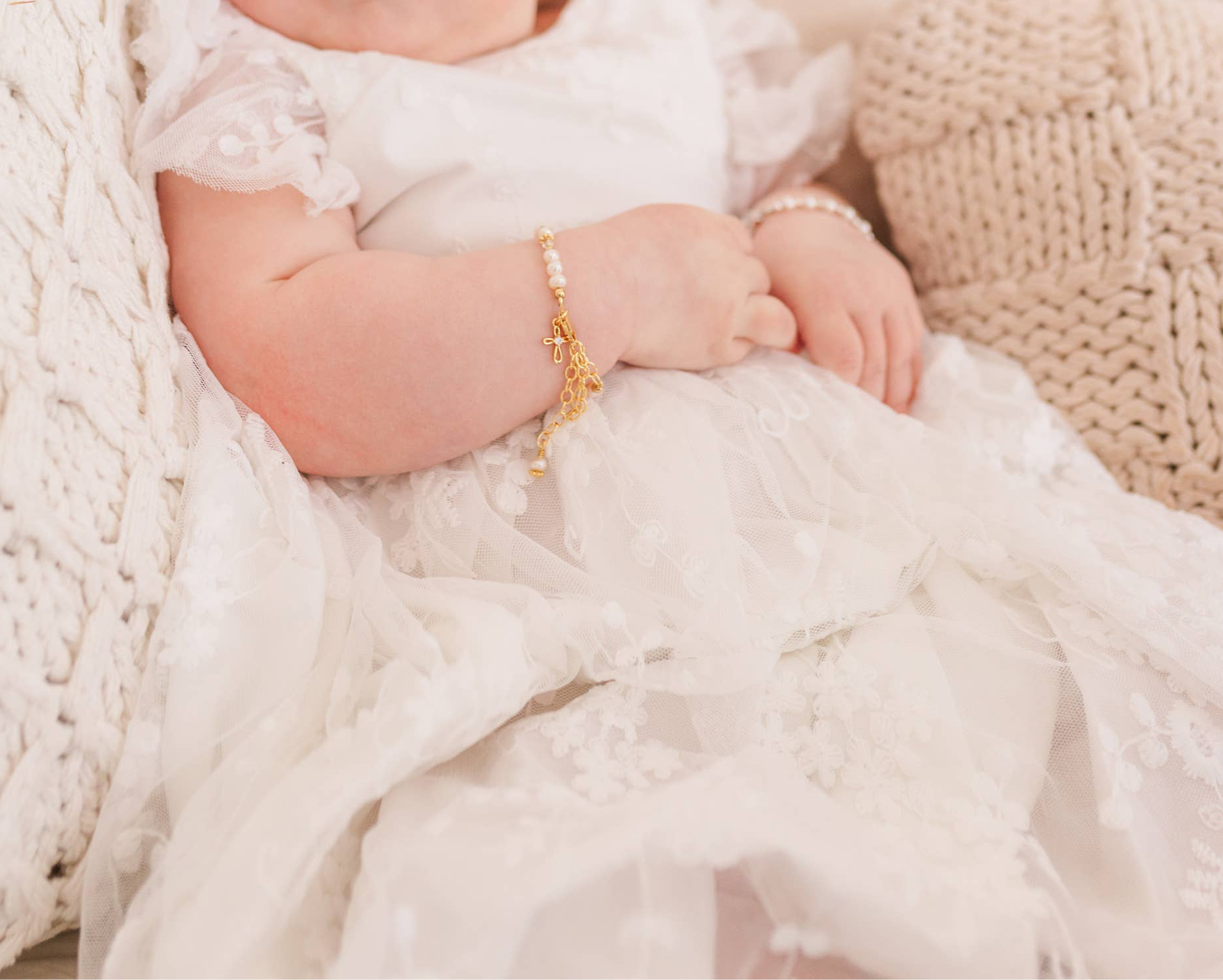 14K Gold-Plated/Pearl Cross Bracelet | 1-5 Years