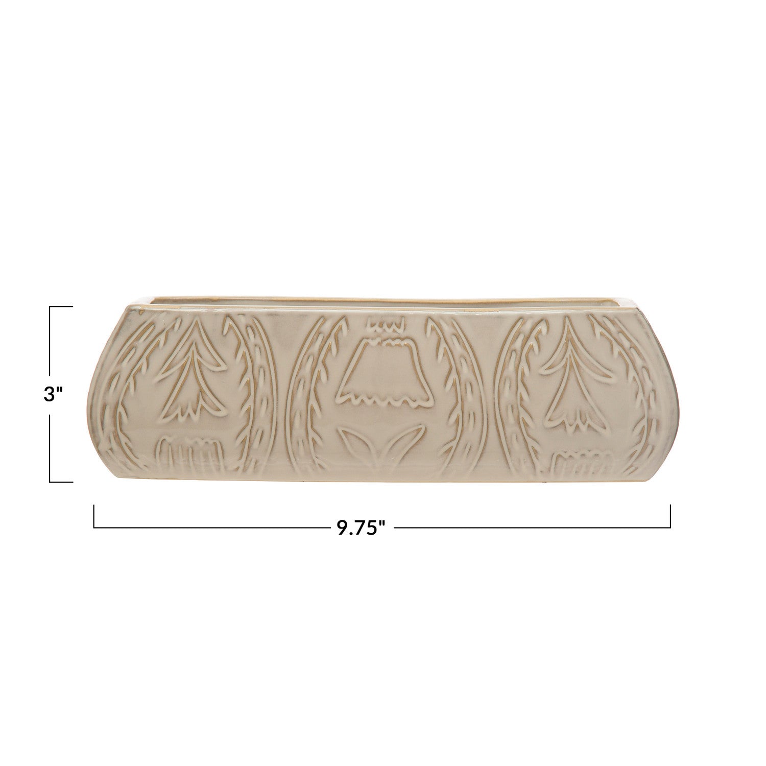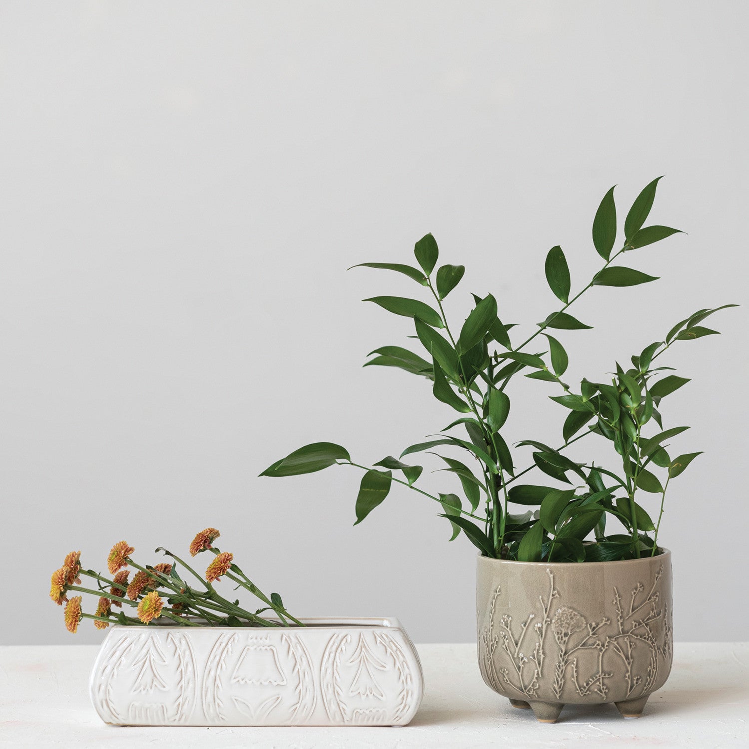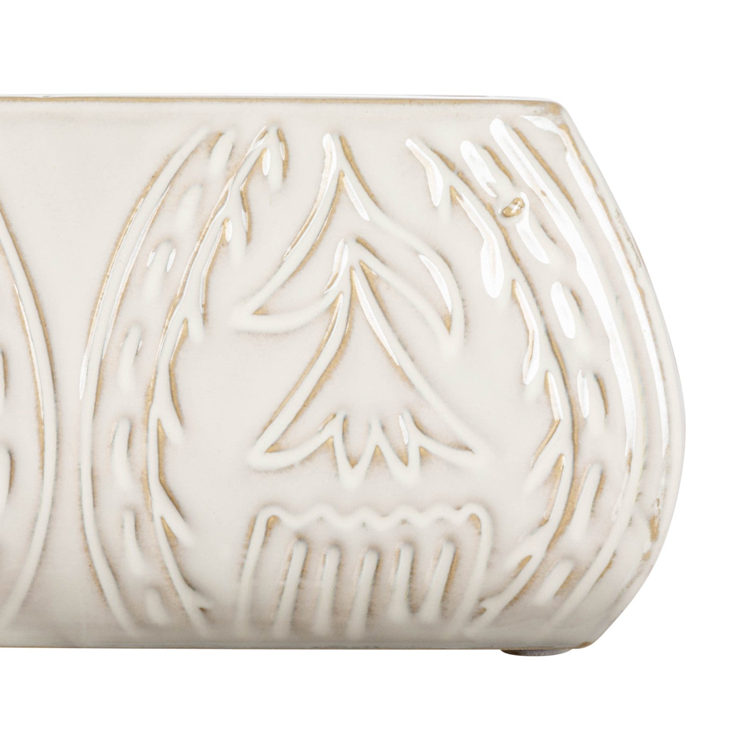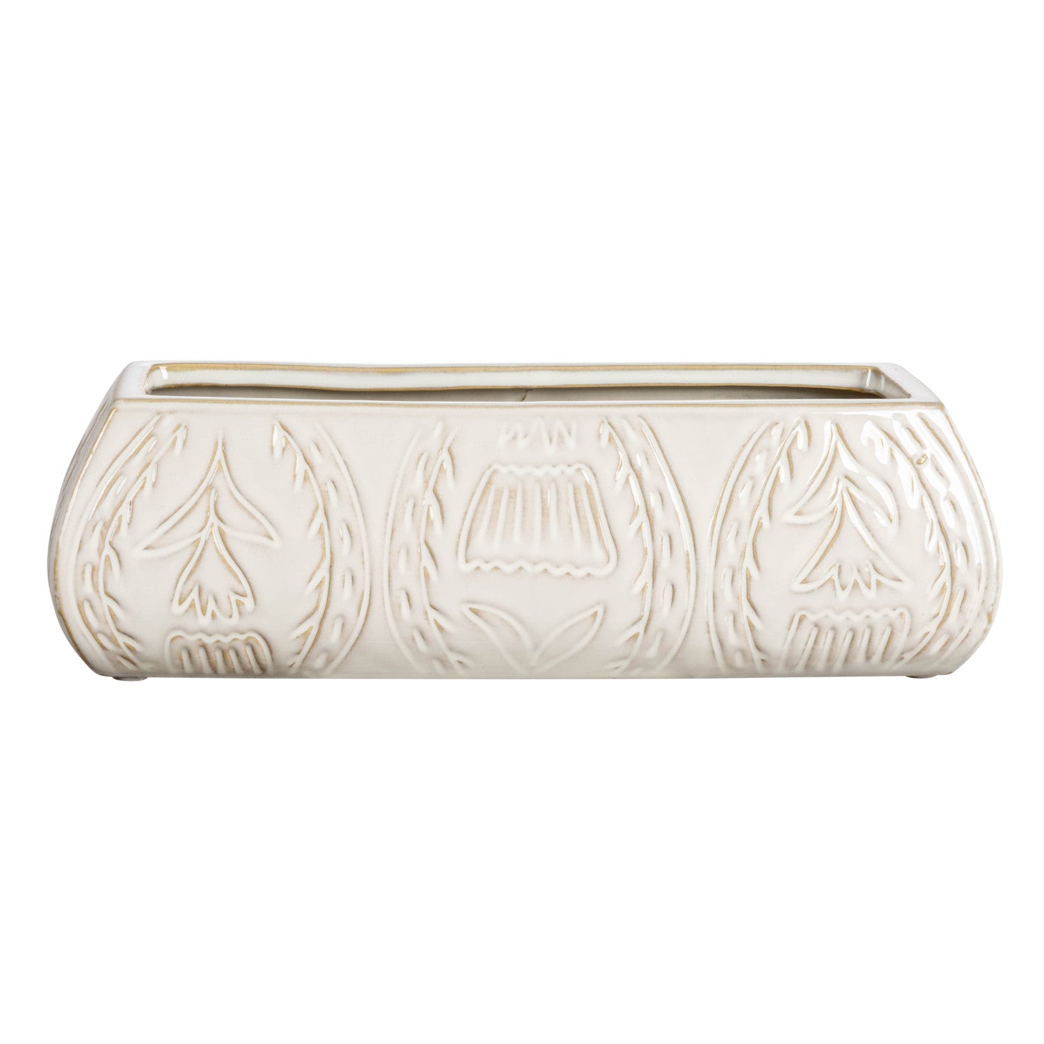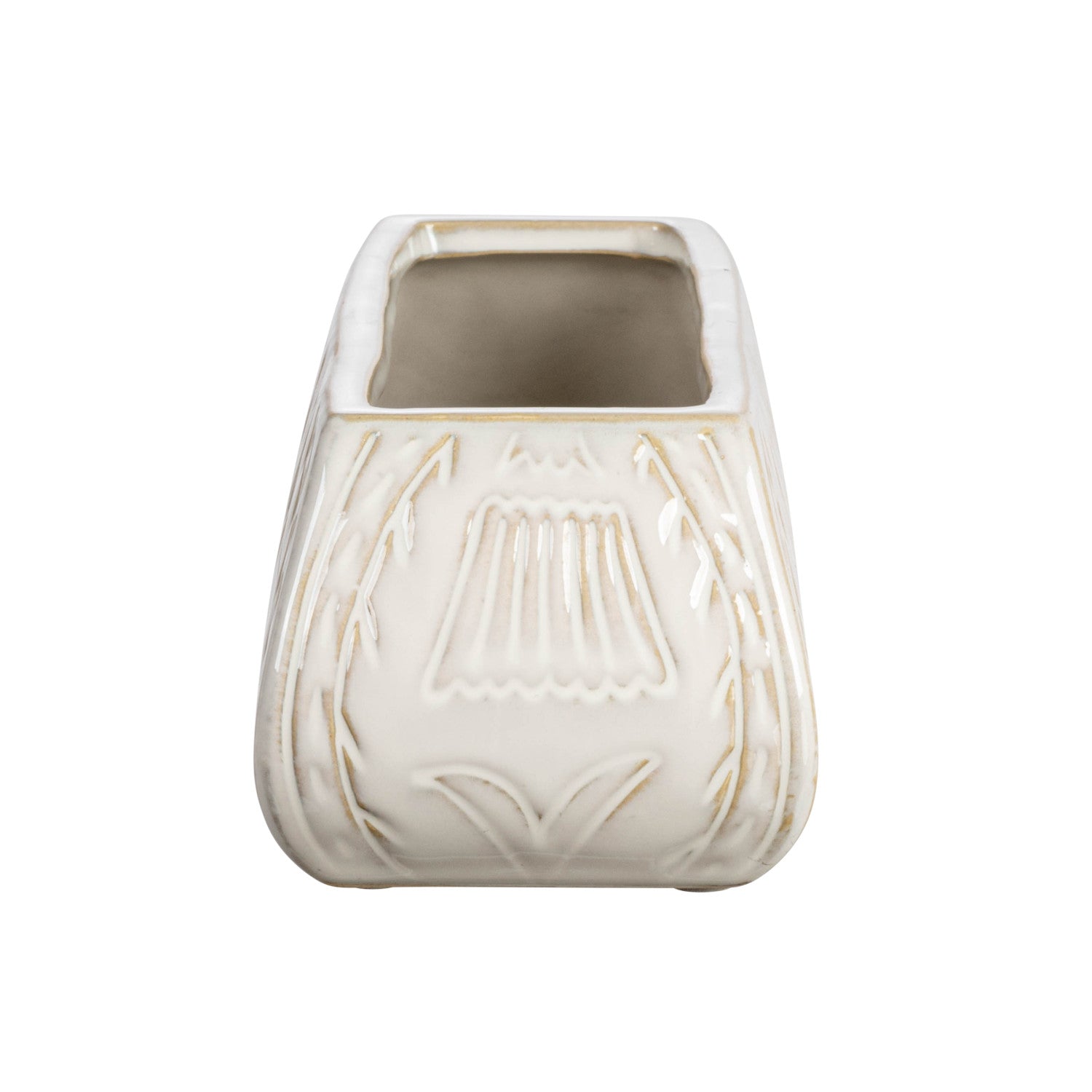 Debossed Stoneware Planter w/ Flower Design | Antique White
