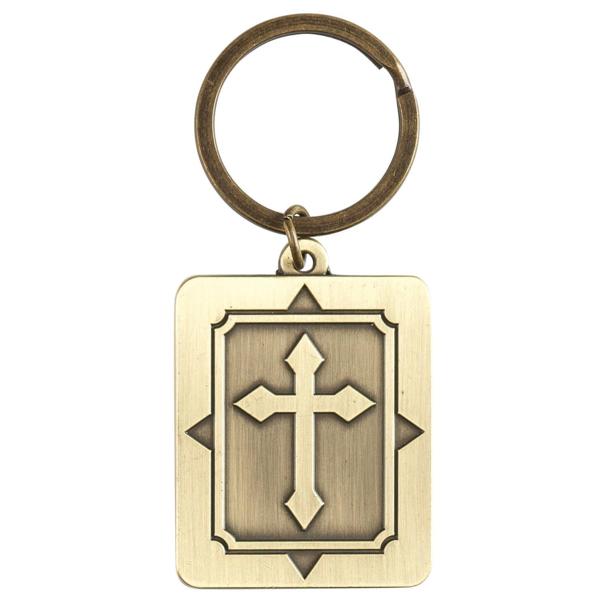 This keyring is a great small gift that any Man of God is sure to appreciate. Features a pendant with raised and engraved cross design on front. Back is engraved with first lines of the Man of God prayer: Help me, Lord, to honor you in everything I say and do. Amen. Pendant size is 1 1/4" x 1 1/2"; made of zinc alloy metal with antique brass tone finish. Keyring comes on attractive small header card. Poem by Alda Maria ©Dicksons.
