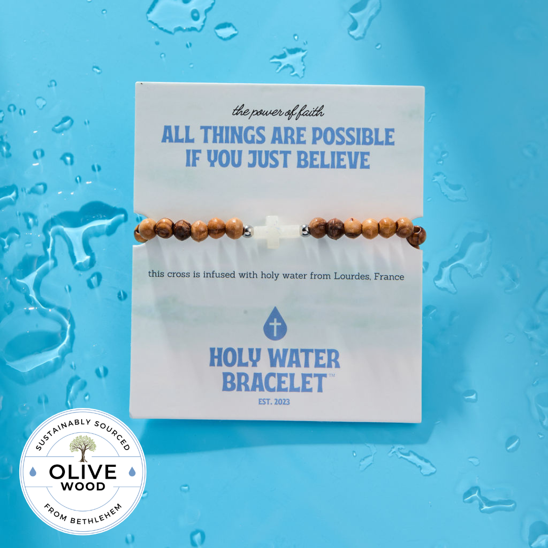 Holy Water Olive Wood Cross Bracelet | Gold Spacer Beads