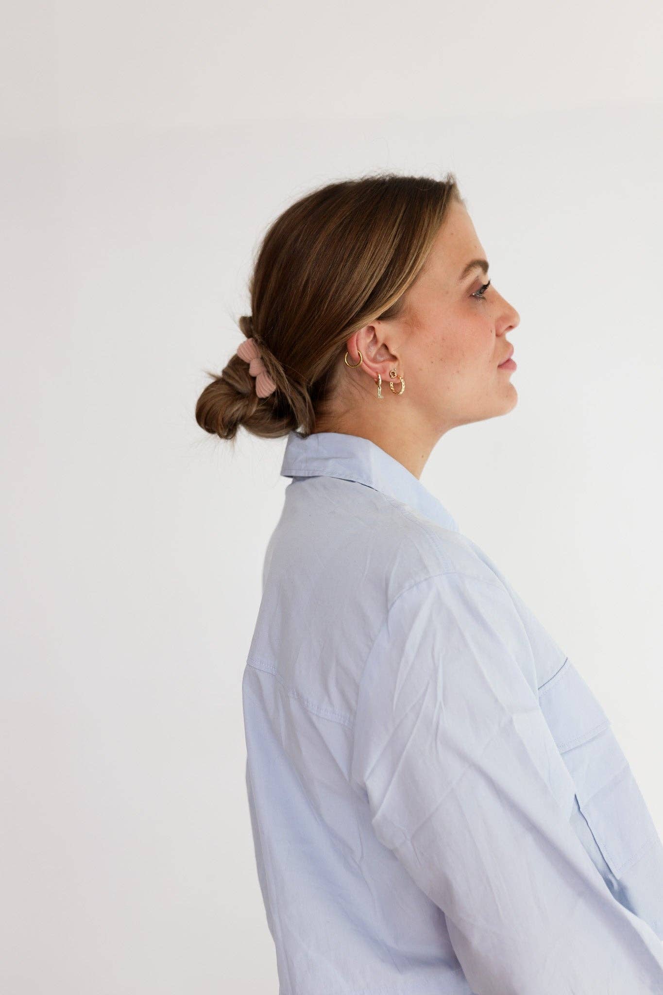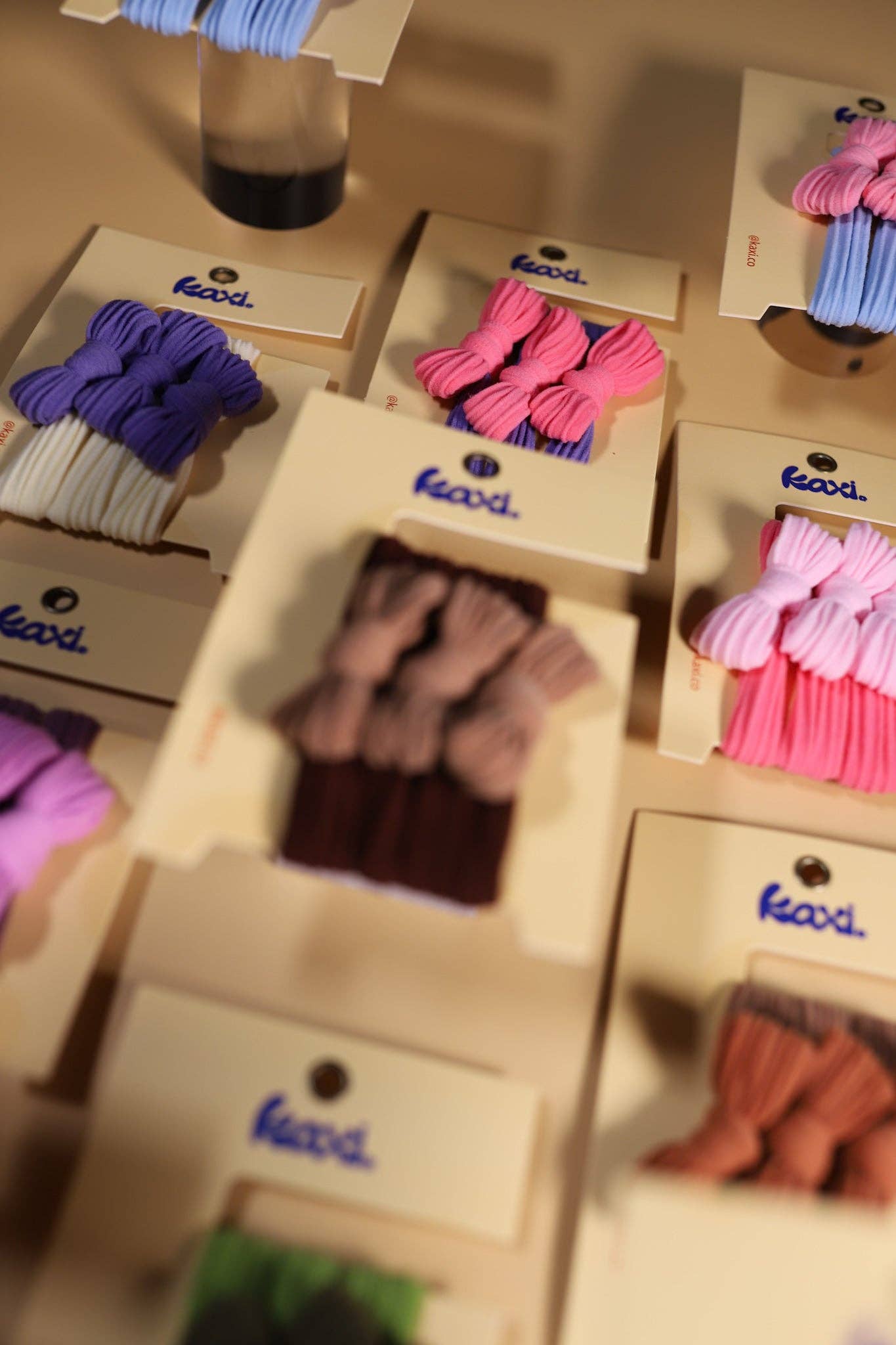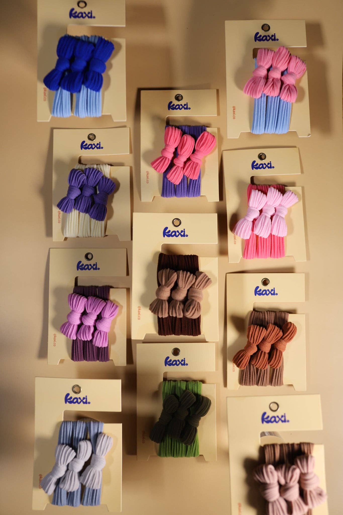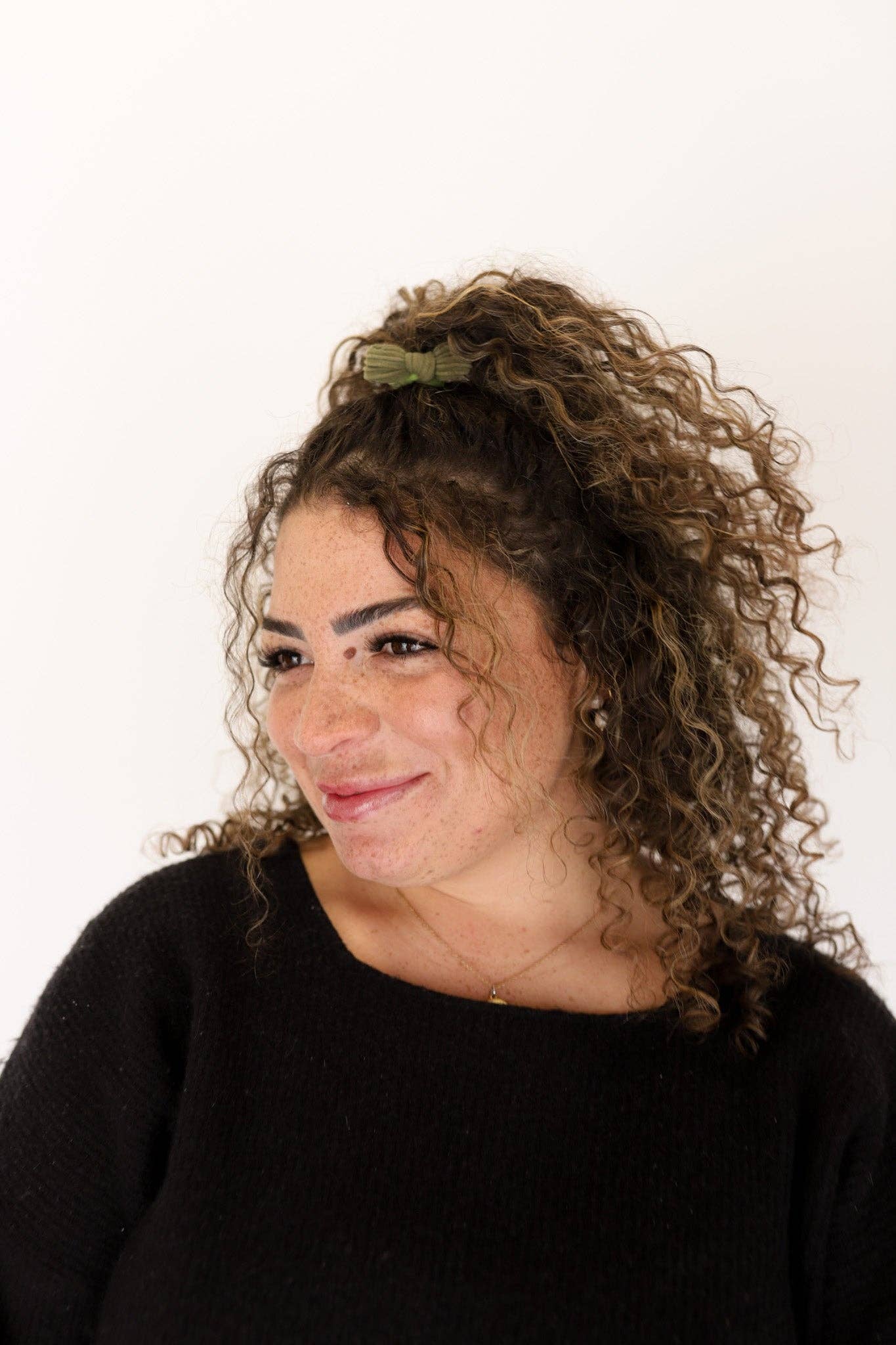 These are our cutest hair ties YET! These come in neutrals, bright colors, soft colors...literally EVERY color. Perfect for literally every and any occasion. Comes in a stretchy spandex material and have a simple bow on it that gives them that feminine touch! They are perfect if you need a tight elastic for your high intensity workout, but still offer a stylish look and this elastic is just fabric with no elastic on the inside to damage your hair. Perfect for pool days, high intensity workouts, or everyday use!