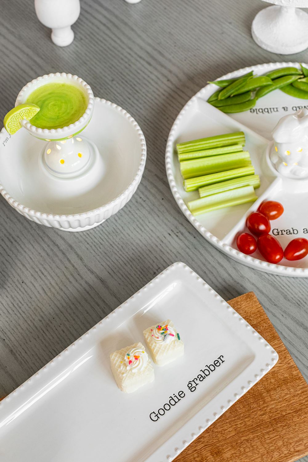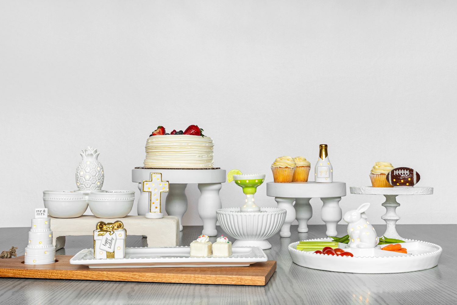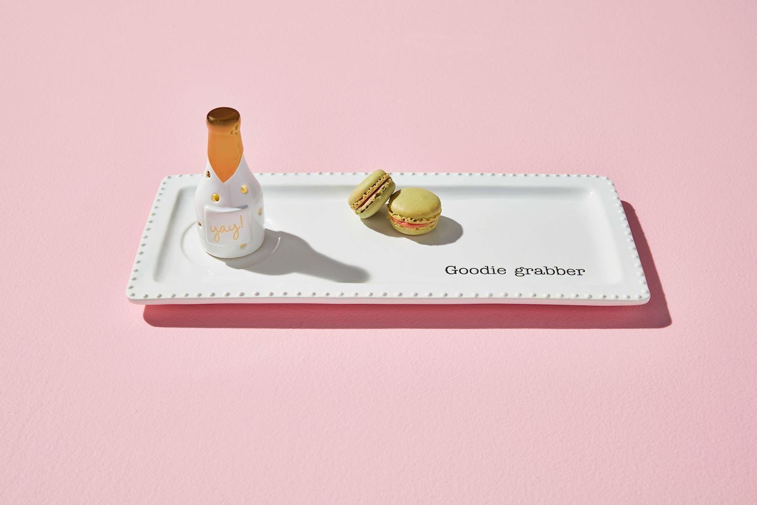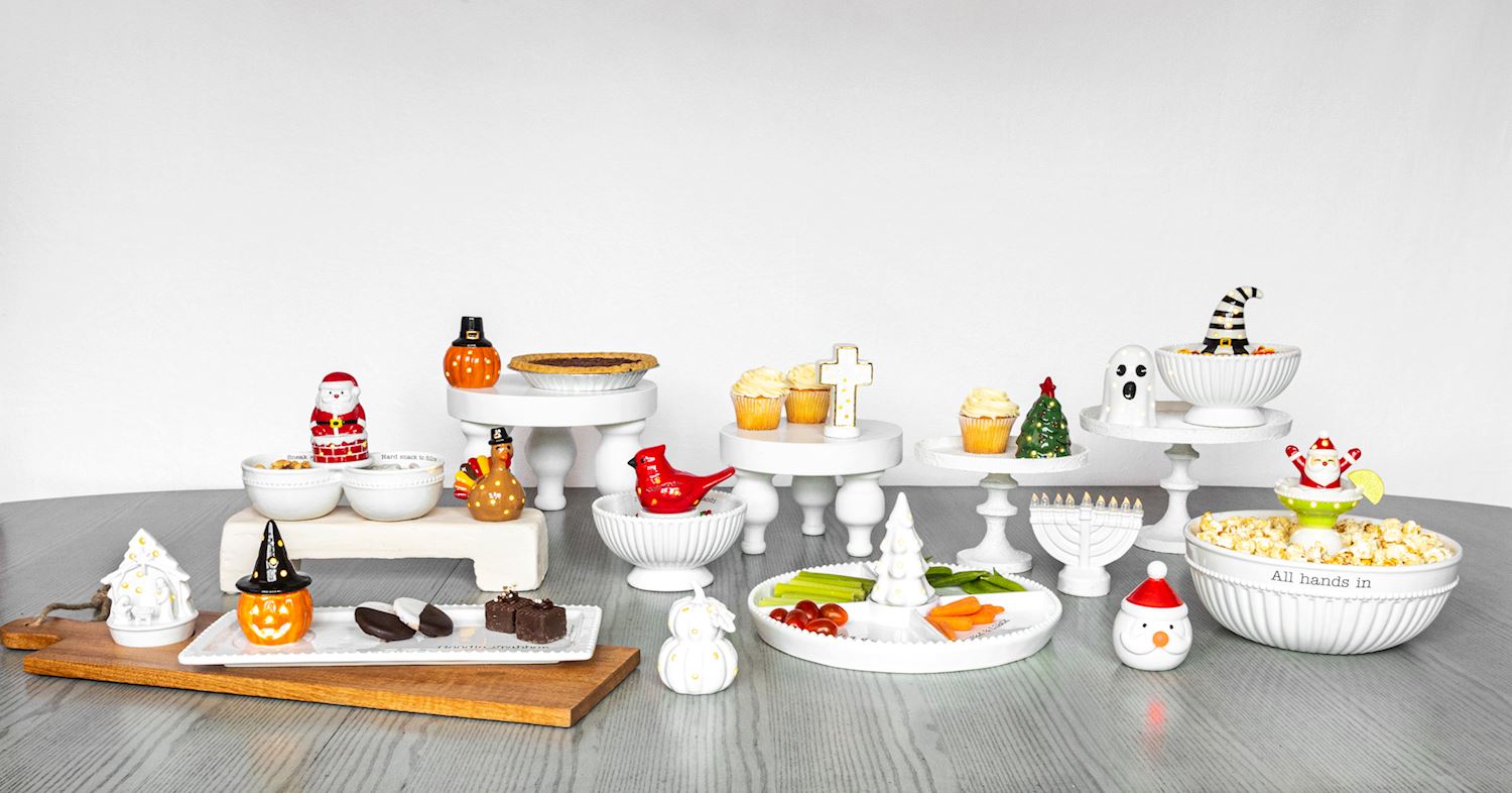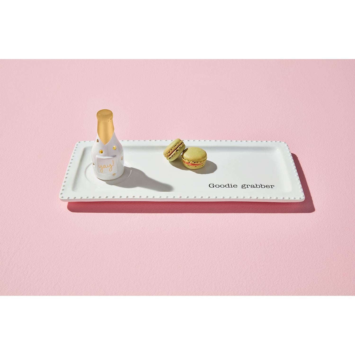 Beaded ceramic tray with surface well to hold decorative light-up sitters.