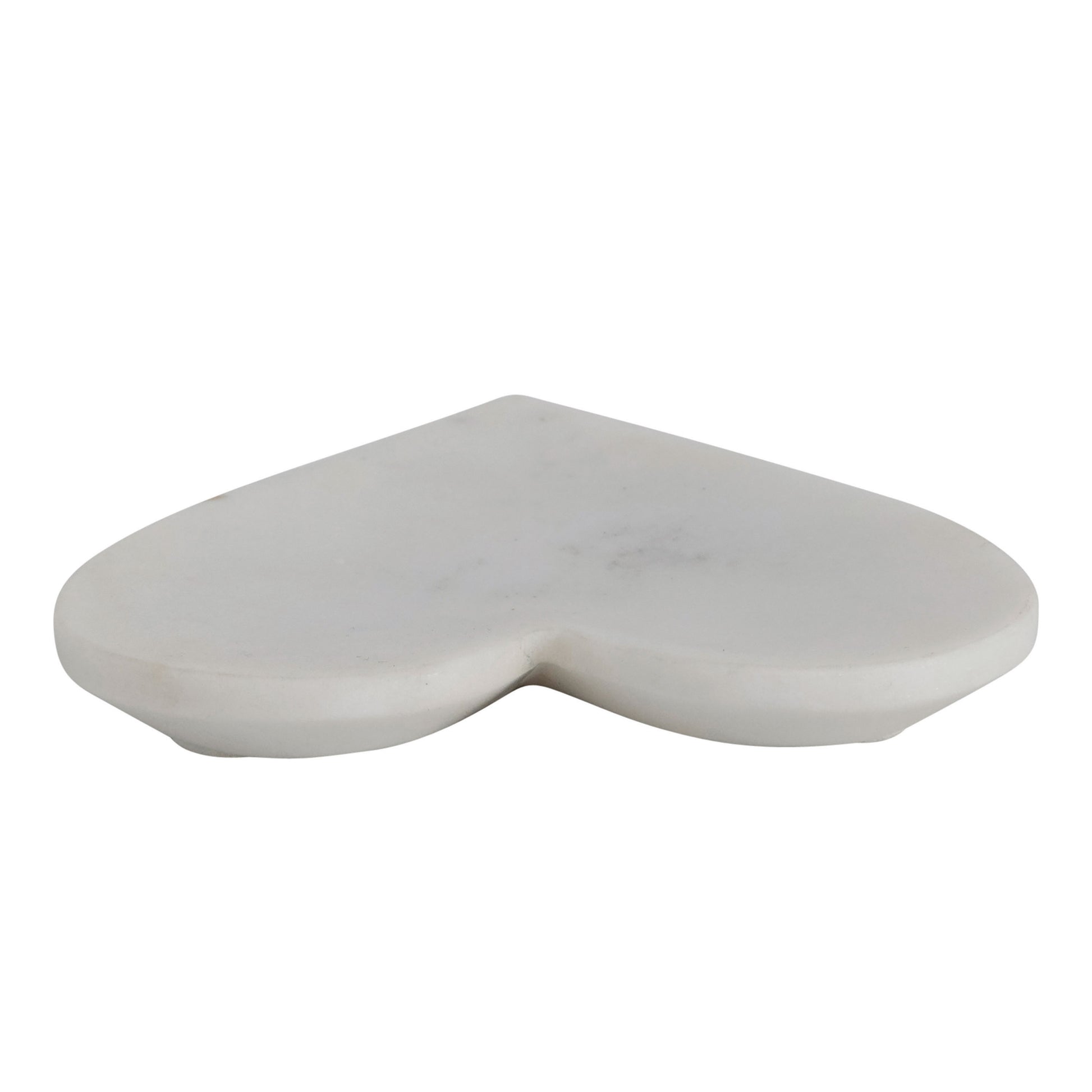 This charming decorative dish features genuine marble construction carved into a romantic heart shape. Decorative heart shaped marble dish in white naturally variating finish. Arrange rings and small jewelry inside and place on a vanity, or beautifully blend into a whimsical tablescape.