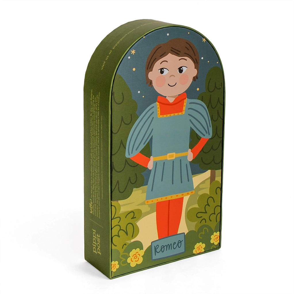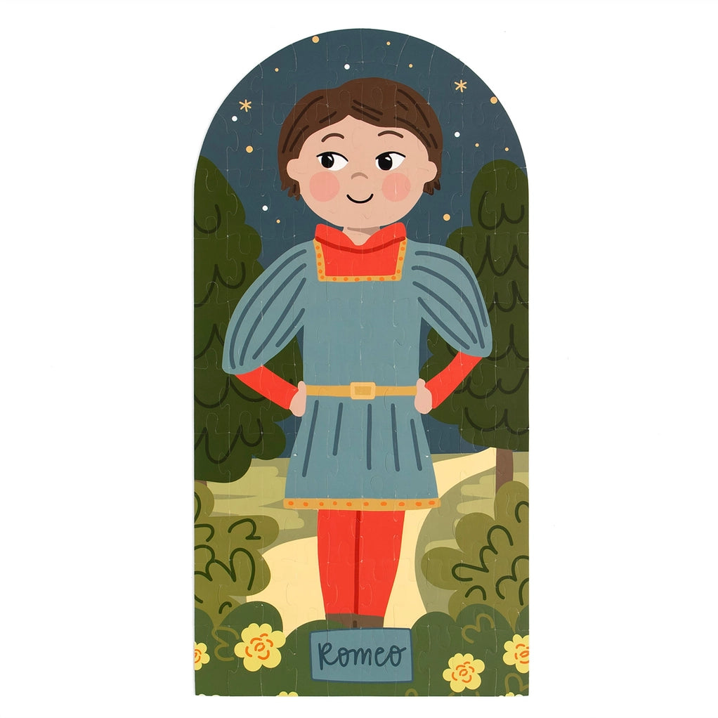Dive into the world of Shakespeare with our Romeo & Juliet 100 Piece Double-Sided Character Jigsaw Puzzle. This unique two-in-one puzzle features characters from the iconic play on both sides, providing a double challenge for literature and puzzle enthusiasts. With 100 pieces, it's a family fun activity for adults and children alike. The unique dome shape of the box also serves as an excellent display on any bookshelf. A thoughtful gift for teachers to use in their classroom, fans of classic literature, and those who enjoy one-of-a-kind puzzles!