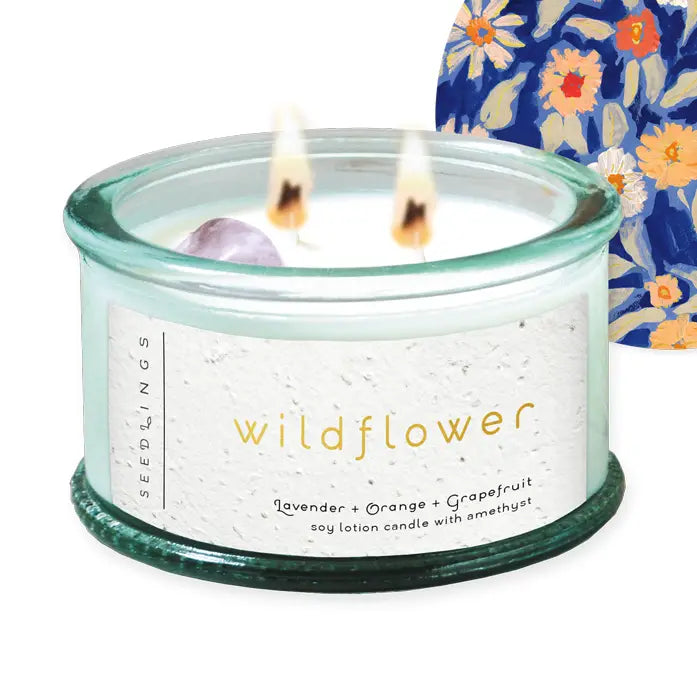 - Wildflower Candle for stress relief | Lavender + Prange + Grapefruit with Amethyst