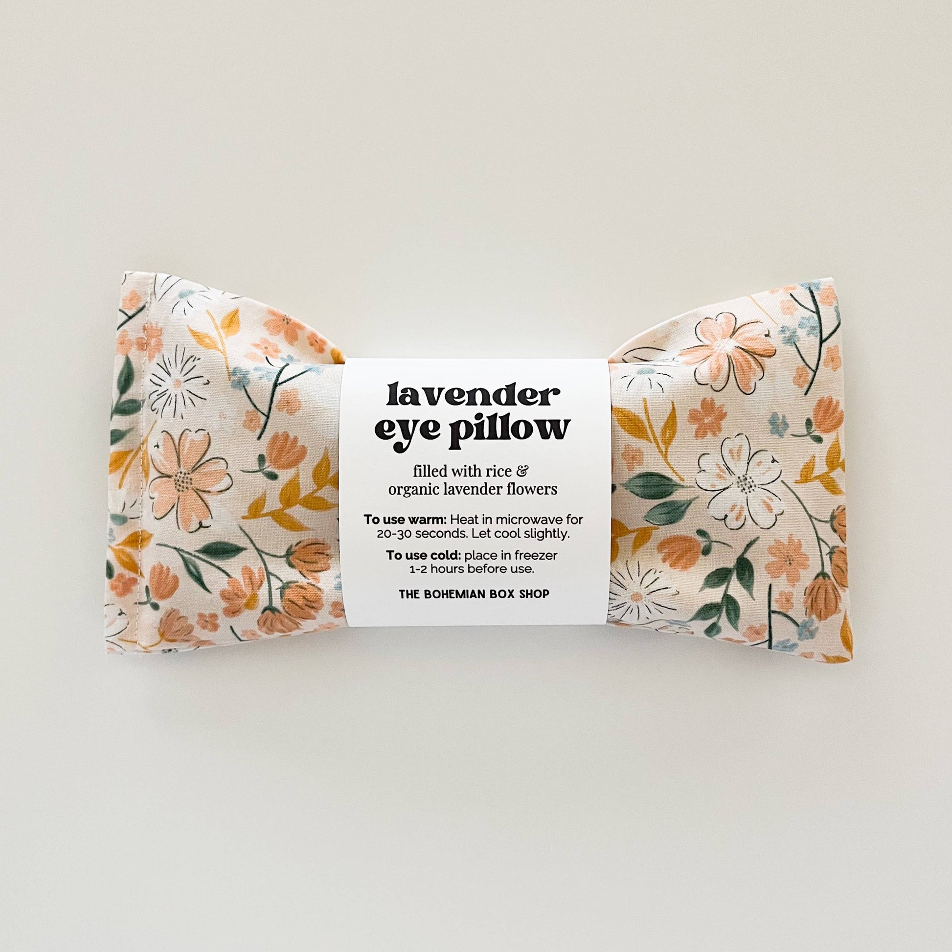 ABOUT OUR EYE PILLOWS: • Measures approximately 8” X 4” • Made with 100% cotton, rice and organic lavender flowers.