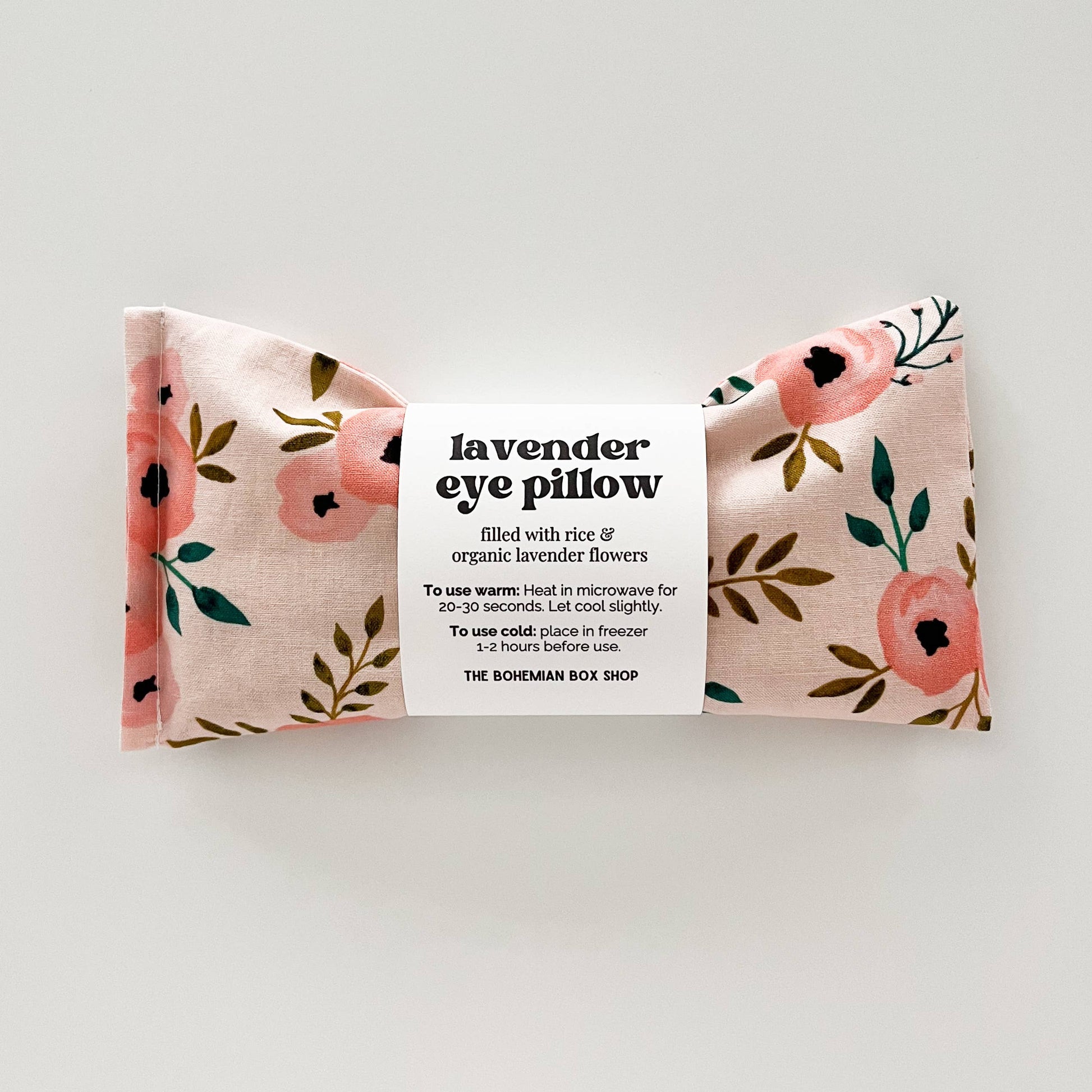 ABOUT OUR EYE PILLOWS: • Measures approximately 8” X 4” • Made with 100% cotton, rice and organic lavender flowers.