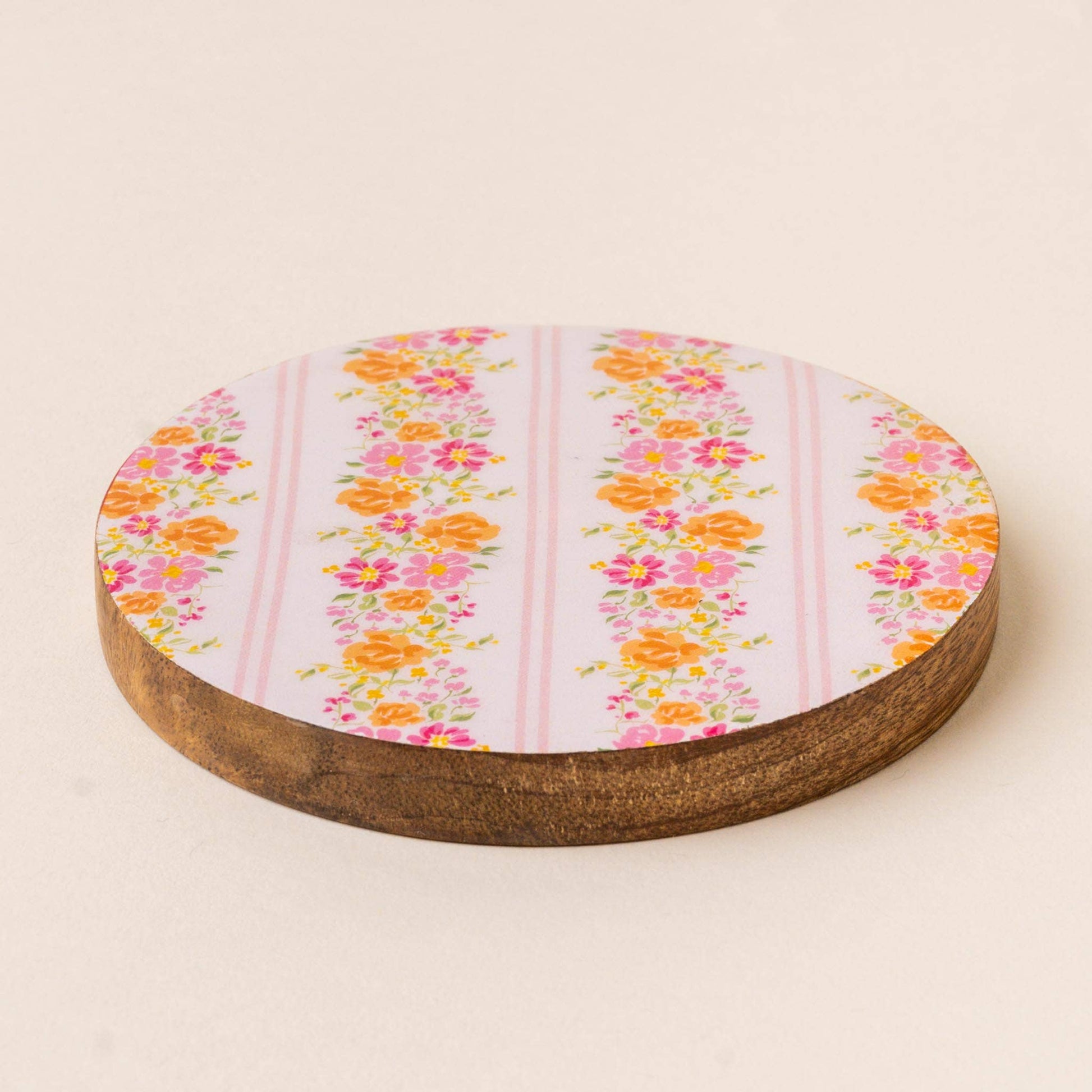 Crafted from high-quality wood and finished with a vibrant enamel design, these coasters bring both style and function to your home. Perfect for protecting your surfaces while adding a decorative flair, they’re durable and easy to clean. Whether you're enjoying a coffee or cocktail, these coasters make a charming addition to any table or countertop. Wood coaster with enamel coating. Larger size for a variety mugs, tumblers, and glasses. Protect surfaces from hot or cold beverages.