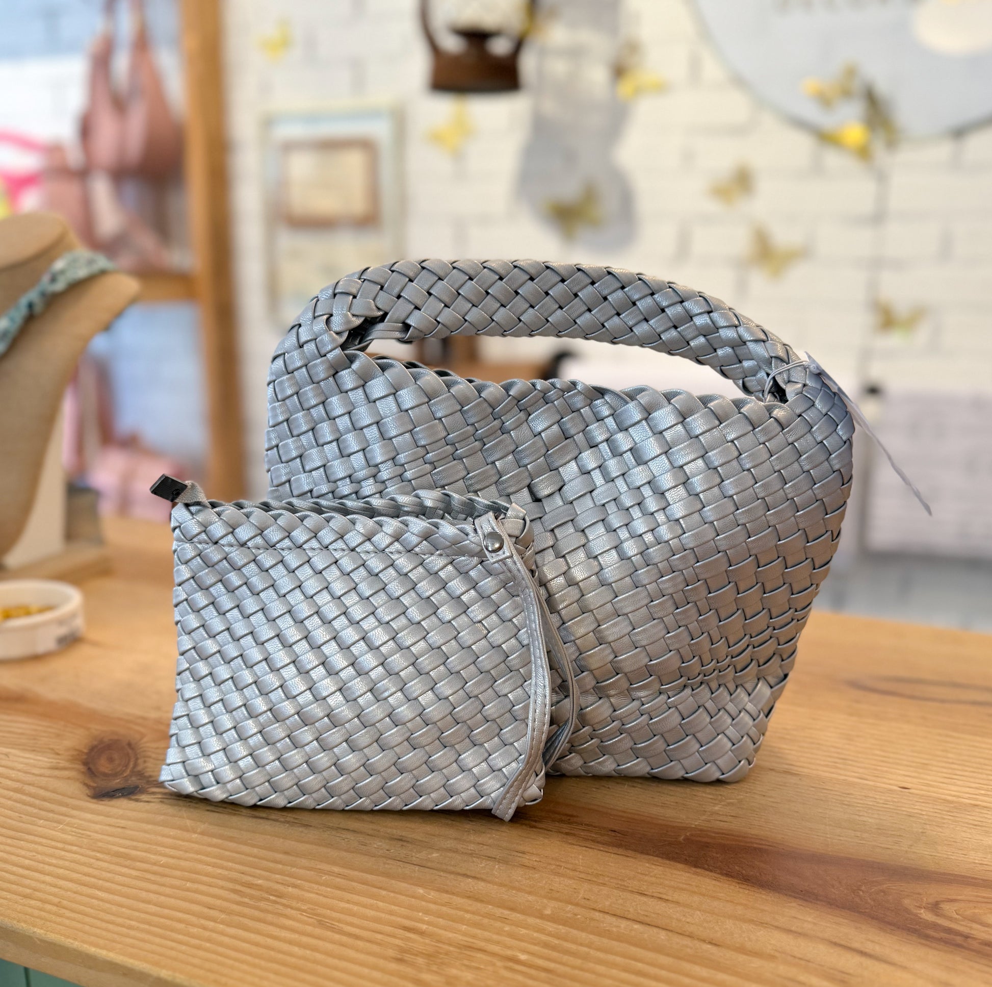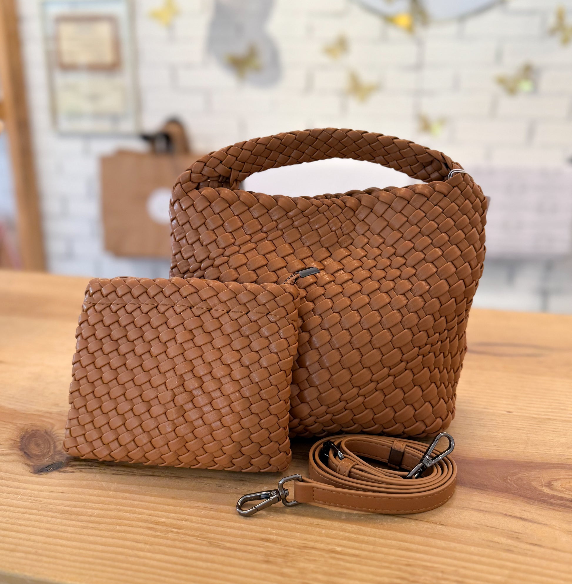 - vegan leather braided crossbody bag w/ wristlet