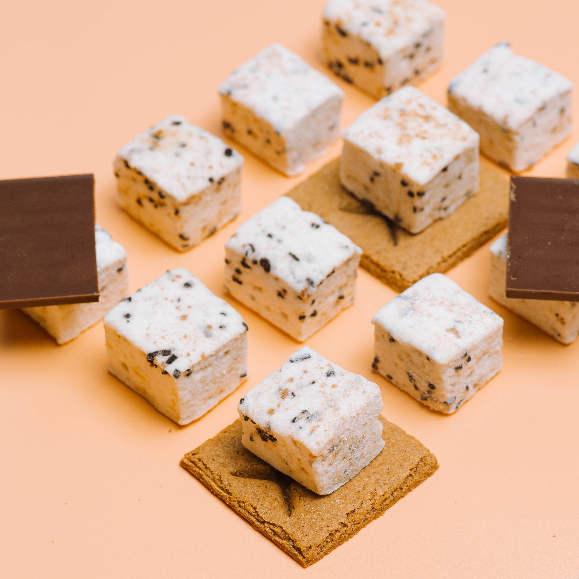Our most meta marshmallow has returned as our summer seasonal mallow — s’mores! No campfire needed, this marshmallow has everything you need for a s’mores in one delicious bite. Graham, chocolate, mallow, graham — who could ask for s’more?